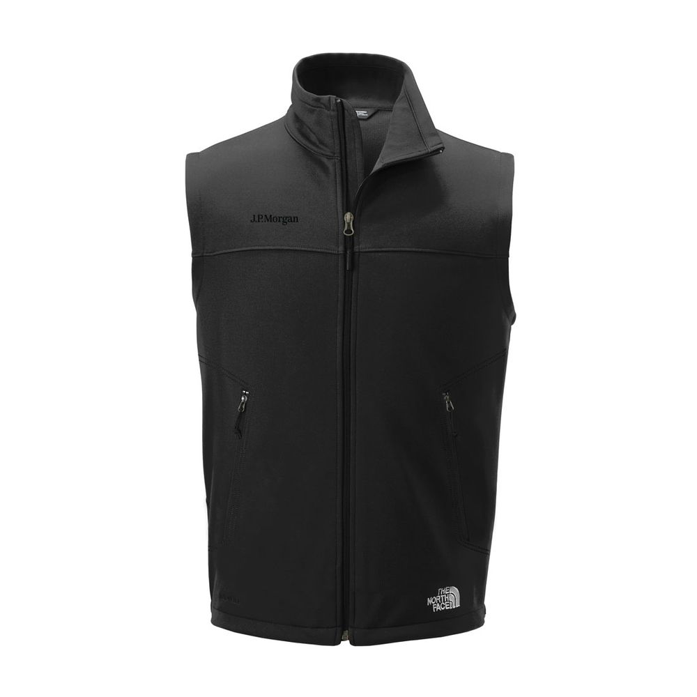 Cover your core without restricting mobility in this abrasion- and wind-resistant vest that has a warm, technical gridded fleece interior for additional comfort. 306 g/m2 WindWall. 100% polyester with durable water-repellent (DWR) finish. Highly wind-resistant with wind permeability at less than 10 CFM (0 CFM is 100% windproof). Brushed micro-gridded fleece interior. Reverse-coil center front zipper and hand pockets. Hem cinch-cord. The North Face logo on left hem and right back shoulder. J.P. Morgan logo embroidered on the chest.
