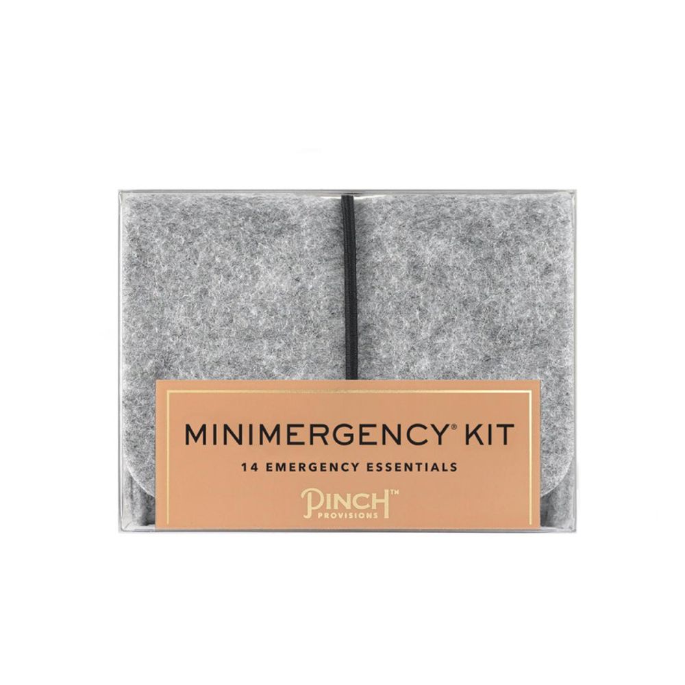 Meet our universal problem-solver, our first-ever unisex Minimergency Kit. Housed in the perfect little grey felt pouch with elastic closure, this kit contains 14 emergency essentials.